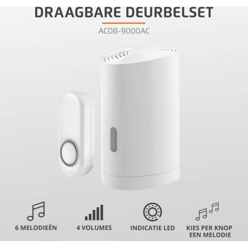 Mis nooit meer iemand voor je deur met de draadloze deurbel van KlikAanKlikUit. Combineer deze bel met een draadloze deurbel drukker om de set compleet te maken. De bel kan 6 verschillende melodieën afspelen op 4 verschillende volumes.