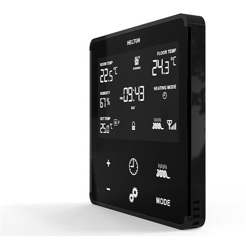 Slimme thermostaat voor het aansturen van elektrische (vloer)verwarming; bijvoorbeeld in de badkamer. Met ingebouwde vochtsensor.